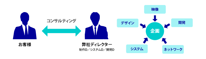 当社のディレクターが、お客様と綿密なコミュニケーションを取ることで、常にお客様の視点から現状を分析し、多様なニーズに合わせてご提案します。